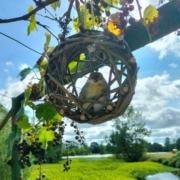 Dédiée aux petits oiseaux, suspendue au balcon ou au jardin, ce bel objet tressé est facile à réaliser, même par les enfants.